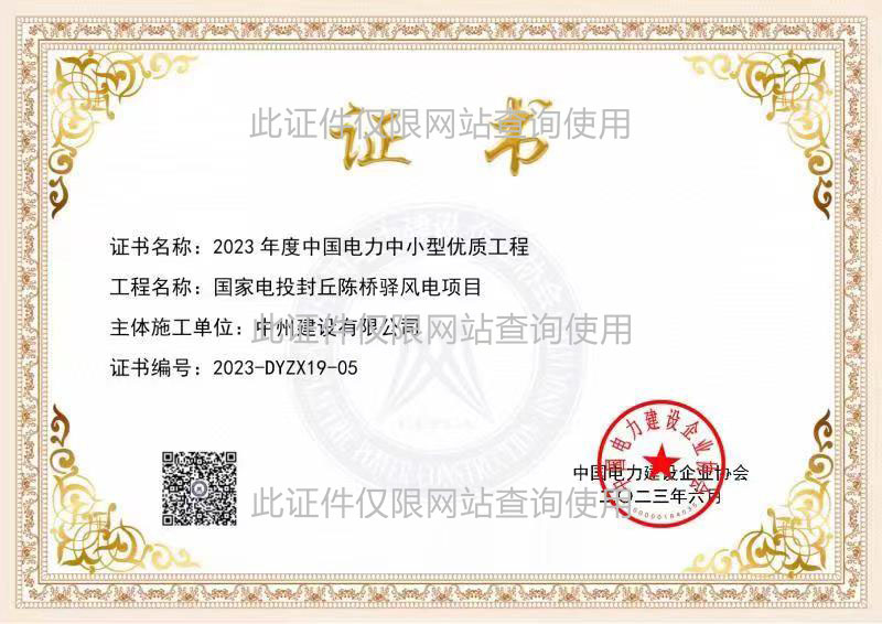 國優(yōu)證書:國家電投封丘陳橋驛風(fēng)電項(xiàng)目